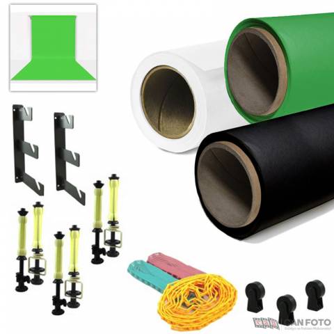 Gdx Sabit Kağıt Sonsuz 3'lü Fon Perde (White, Green, Black) 2.70x11M