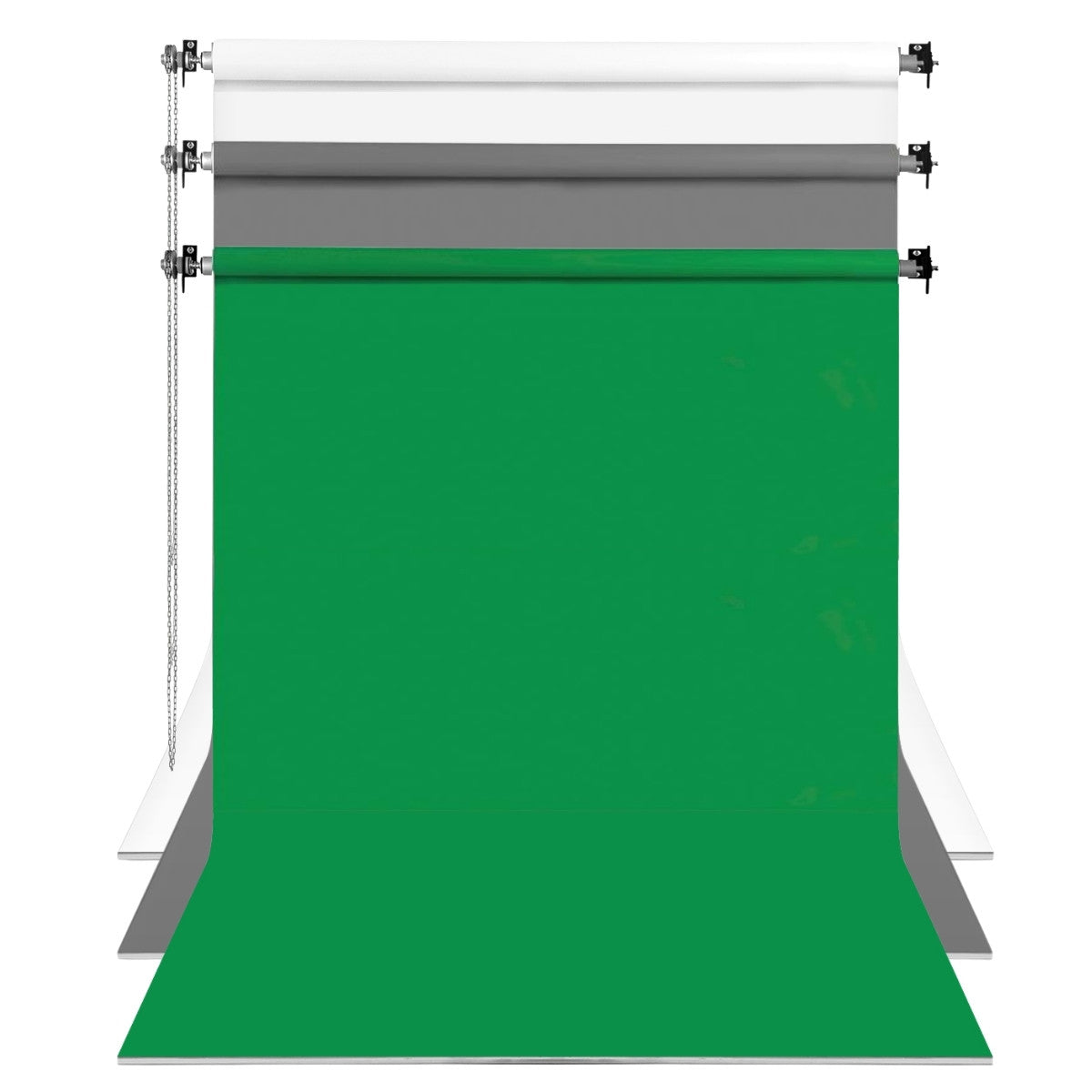Yansımaz özelliğe sahip özel yüzeyi ve yüksek kaliteli malzemesi ile stüdyo fotoğrafçıları tarafından tercih edilmektedir. Geniş açılı çekimlere olanak tanıyan büyük ebatlı fon, profesyonel kullanım için idealdir ve silinebilir kumaştır. Boru, makara, zincir ve askı aparatları sayesinde sistemin kurulumu son derece kolaydır. Fon kumaşı makara zincir sistemi sayesinde zahmetsizce açılıp kapatılabilir. Paket içeriğinde yer alan üçlü askı aparatı, üç kumaş fonun kullanımı için uygundur ve hem duvar hem de tavan montajına olanak sağlar.