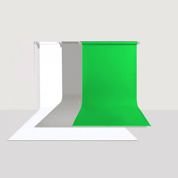 GDX Sabit Kumaş Beyaz - Yeşil - Gri 3'lü Fon Perde Seti 2.70x5.80 Metre - Tavan ve Duvar İçin